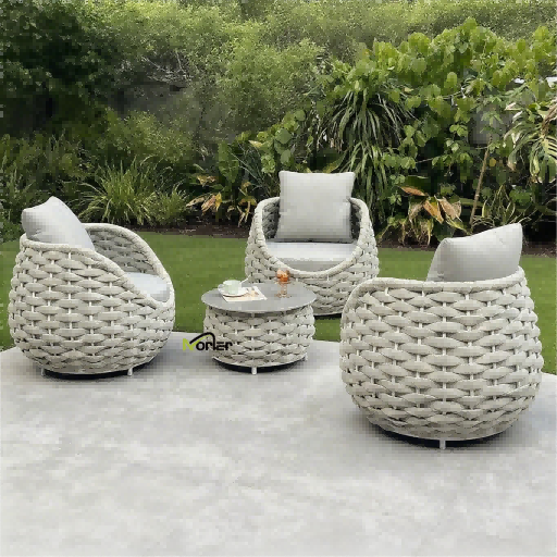 4. Rope lauko sofa: rankomis pintos virvės dizainas yra vizualiai lengvas ir pralaidus orui, o aliuminio rėmas suteikia modernumo. Komfortą ir meniškumą derinantis tai populiarus pasirinkimas kuriant rafinuotą balkoną.